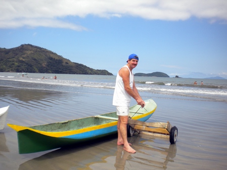 Em Outubro de 2009 tivemos o primeiro evento de CORRIDA DE CANOAS Na Praia do Estaleiro. Este é o nosso querido Dudu , do Rancho do Siri. |