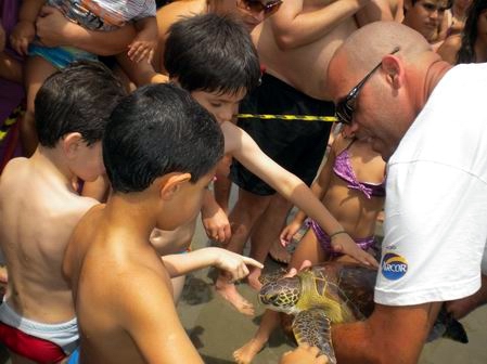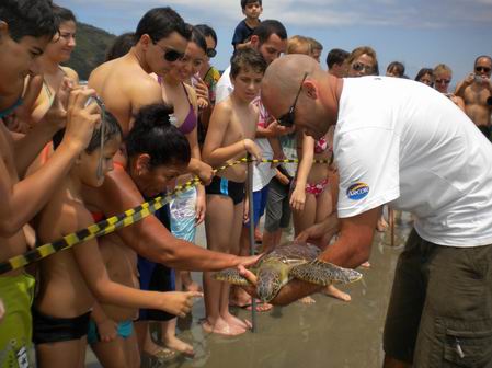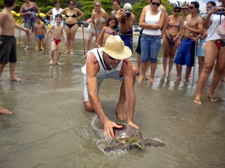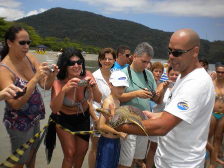 A outra atração foi a soltura de uma tartaruga marinha realizada pelo pessoal do Projeto Tamar. |