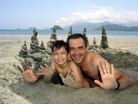 Apesar de ser um feriado no sábado, o 15 de Novembro nada deixou a desejar, o tempo estava lindo!!! O Gabriel até conseguiu a companhia do papai Guto pra construir um forte de areia !!! |