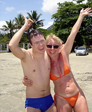 O pessoal se empolgou e teve vôlei na praia!!! Aqui nossa querida Vera com seu sobrinho! |
