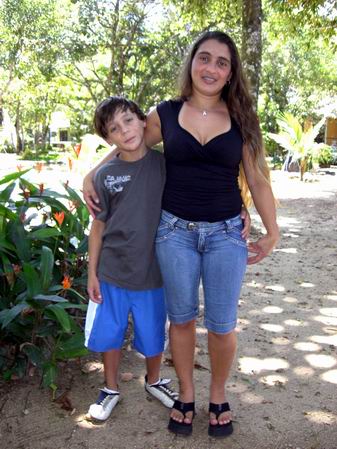 A Andréia é quem cuida dos chalés com muita dedicação! Aqui com seu filho Alef, nosso prodígio no futebol! |