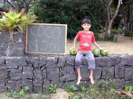 O Gabriel decidiu vender coco na praia! E não é que vendeu mesmo?!!! |