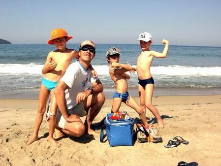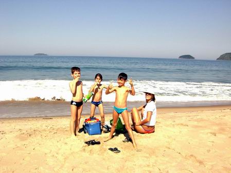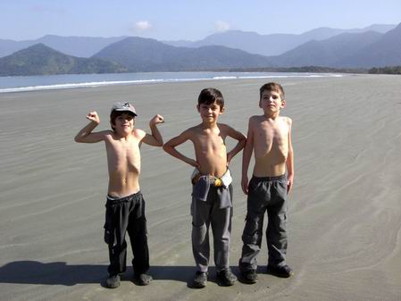 Passamos a manhã na praia de Puruba, estava uma delícia! Os meninos adoraram porque tinha onda e ficaram tomando um caldo atrás do outro, devem ter engolido litros de água, mas quem disse que queriam ir embora... |