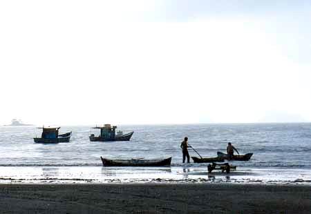 É comum ao amanhecer e entardecer avistar os pescadores com suas embarcações ou puxando rede... Às vezes vendem seu pescado ali mesmo na praia. |