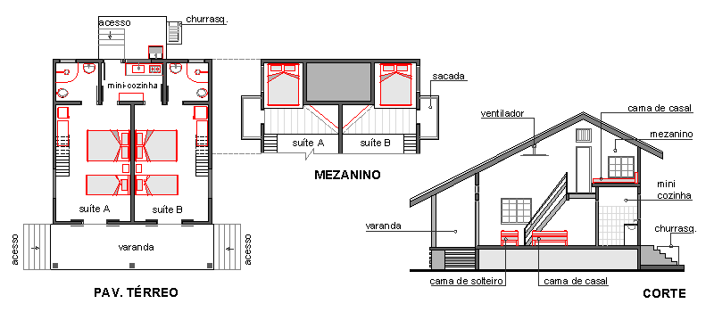 Olhando a planta de arquitetura acima e esta foto você poderá identificar cada parte do chalé. Comece por localizar a varanda, depois as portas, as suítes ... |