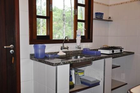 Na Casinha temos duas camas de solteiro e ventilador de teto. Há uma pequena área com uma pia e alguns utensílios de cozinha, não tem frigobar e fogão. |